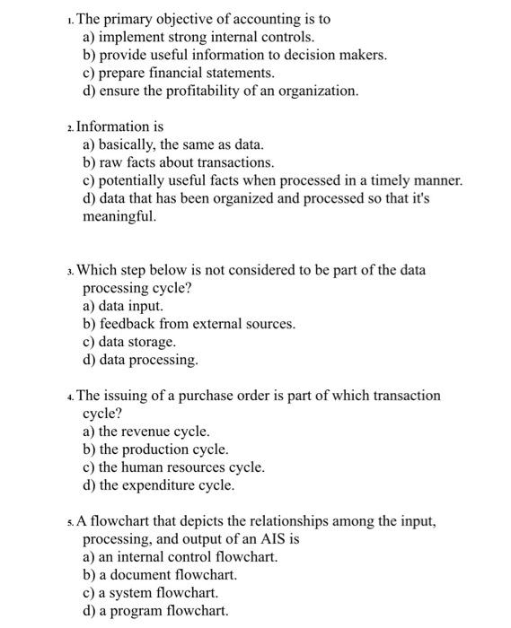 Solved 1 The Primary Objective Of Accounting Is To A Chegg Com